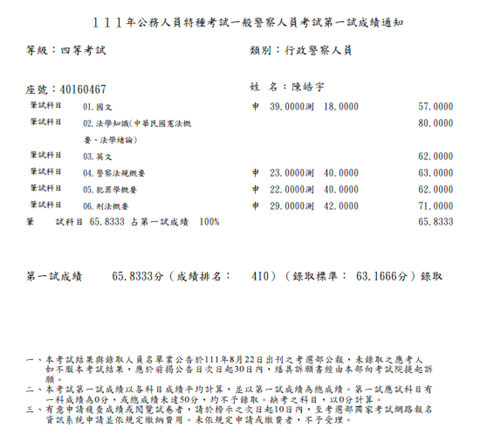 111年四等一般行政警察_陳皓宇上榜心得分享